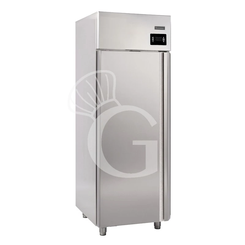 Armadio refrigerato con capacità 700 litri, in classe energetica A, predisposto per l’inserimento di griglie GN 2/1 realizzato in acciaio inox con temperatura -2°C/+10°C.