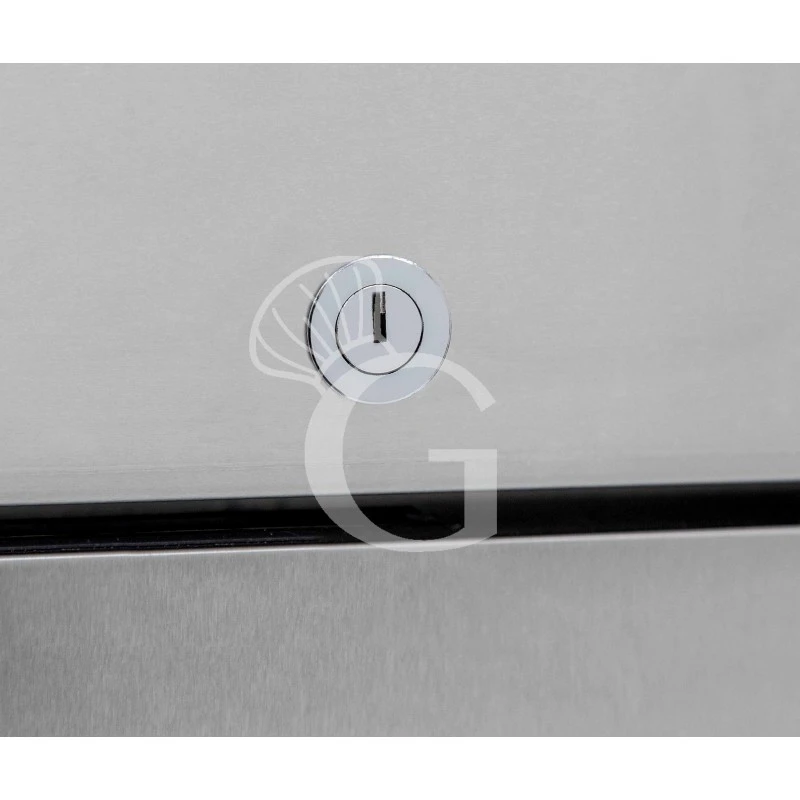 L’armadio possiede due porte reversibili con impugnature ergonomiche, guarnizione magnetica facilmente estraibile e chiusura con chiave del vano refrigerato.