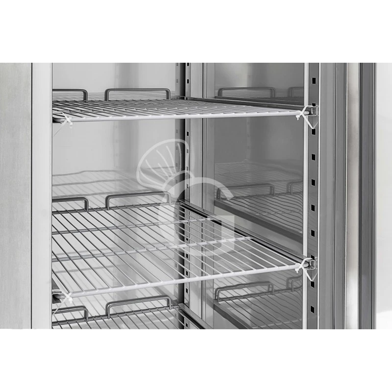 L’armadio refrigerato ventilato ha una struttura sia esterna sia interna realizzata interamente in acciaio INOX AISI 304, mentre i pannelli esterni di fondo e quelli posteriori sono in acciaio zincato. L’armadio è anche regolabile in altezza grazie alla presenza di piedini in acciaio INOX AISI 304. L’interno della cella presenta angoli arrotondati per facilitare le operazioni di pulizia e offrire pertanto praticità e igiene nell’utilizzo.