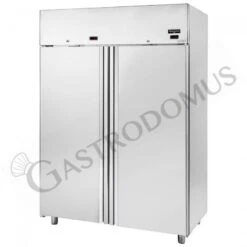 Armadio refrigerato ventilato in acciaio inox con 2 porte, capacità 1400 litri e temperatura 0°C/+10°C e 0°C/+10°C.