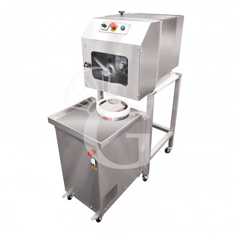 Macchina composta da arrotondatrice in acciaio inox mini e porzionatrice in acciaio inox combinate con supporto in acciaio inox fino ad un massimo di 300 gr.