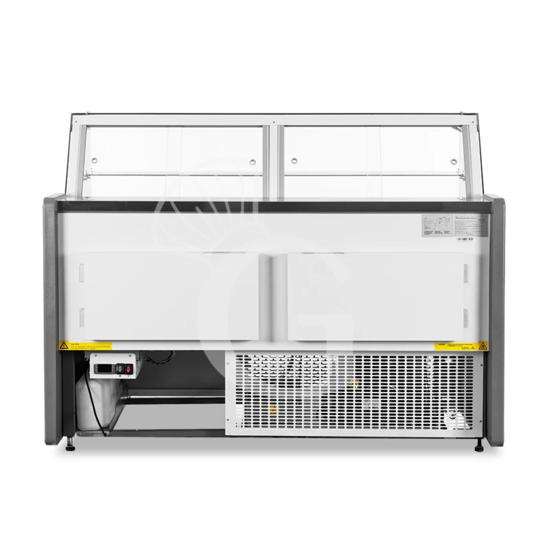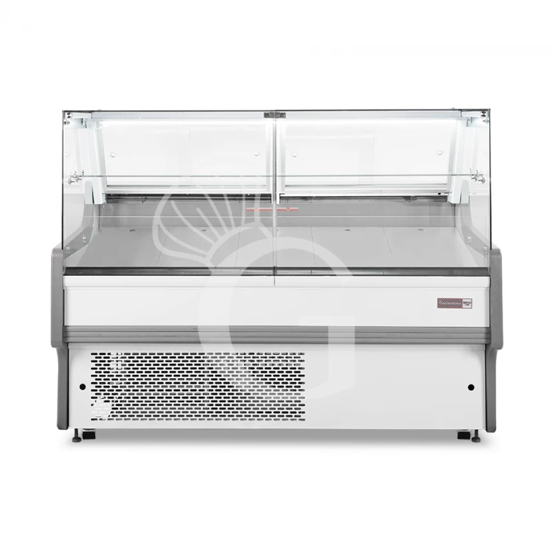 Banco espositivo gastronomia ventilato, vetro dritto, ripiano intermedio, 0°/+5°C lunghezza L 1580 mm Full optional.