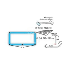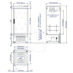 1 ripiano, luce LED, camera interna, cavo+presa, vetro anticondensa, 4 piedini 4 ruote