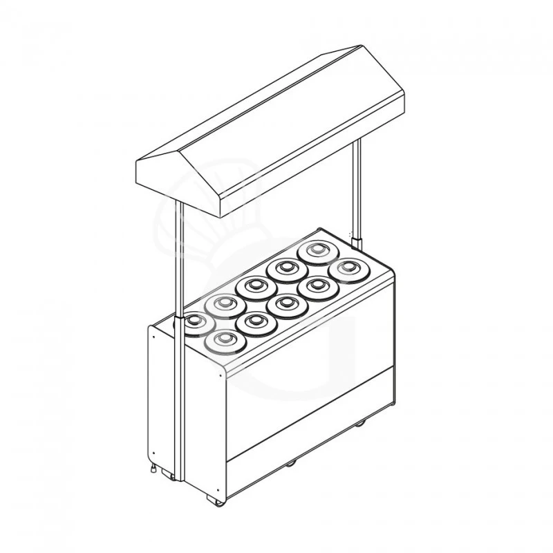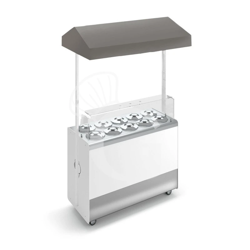 Banco gelato ventilato su ruote Joy 10 pozzetti con riserva e cappottina telescopica grigio, L 1316 x P 856 x H 2170 mm.
