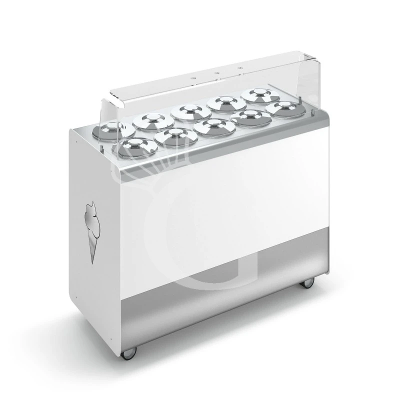 Banco gelato ventilato su ruote Joy 10 pozzetti con riserva, L 1316 x P 604 x H 1005 mm.