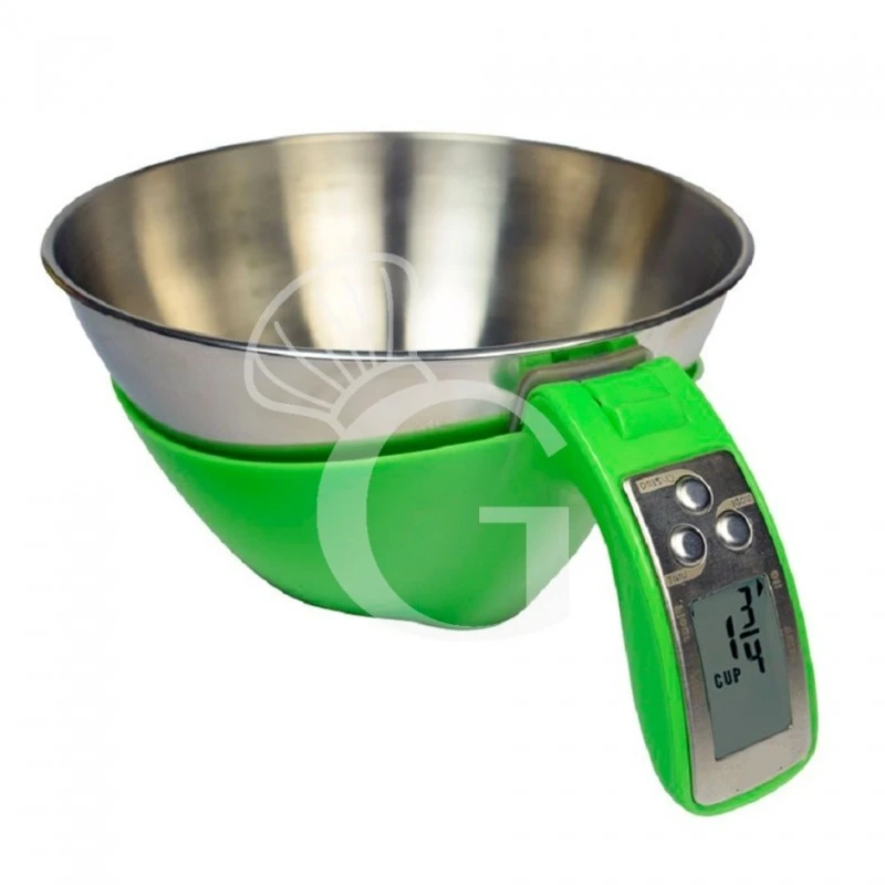 La bilancia da cucina presenta una ciotola in acciaio inossidabile e schermo LCD.