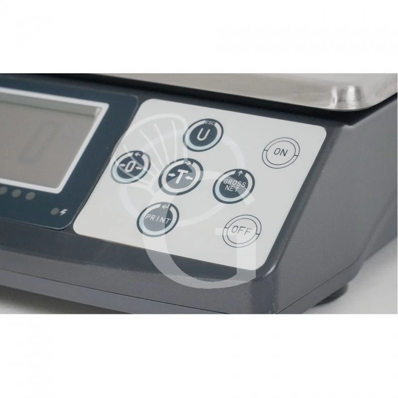 La bilancia è dotata di un display LCD retroilluminato composto da cifre di dimensioni 23 mm ciascuna. L’unità di peso è regolabile ed è presente una bolla di livello; la gravità è configurabile.