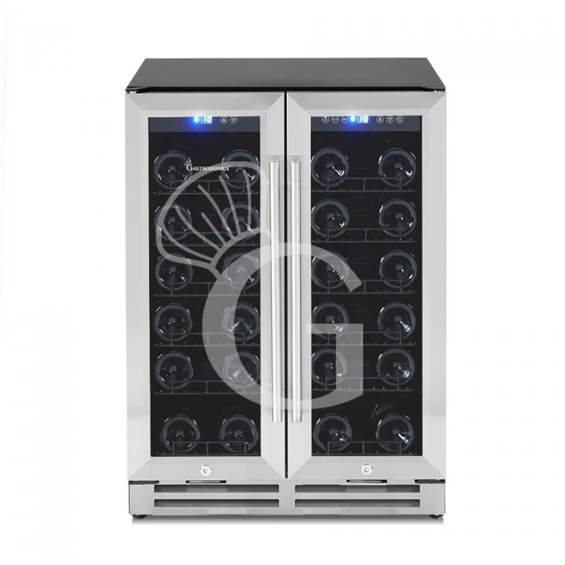 Cantina Vino Ventilata doppia temperatura porte inox 120 LT 12 ripiani 34 bottiglie +5°C/+12°C – +12°C/+22°C.