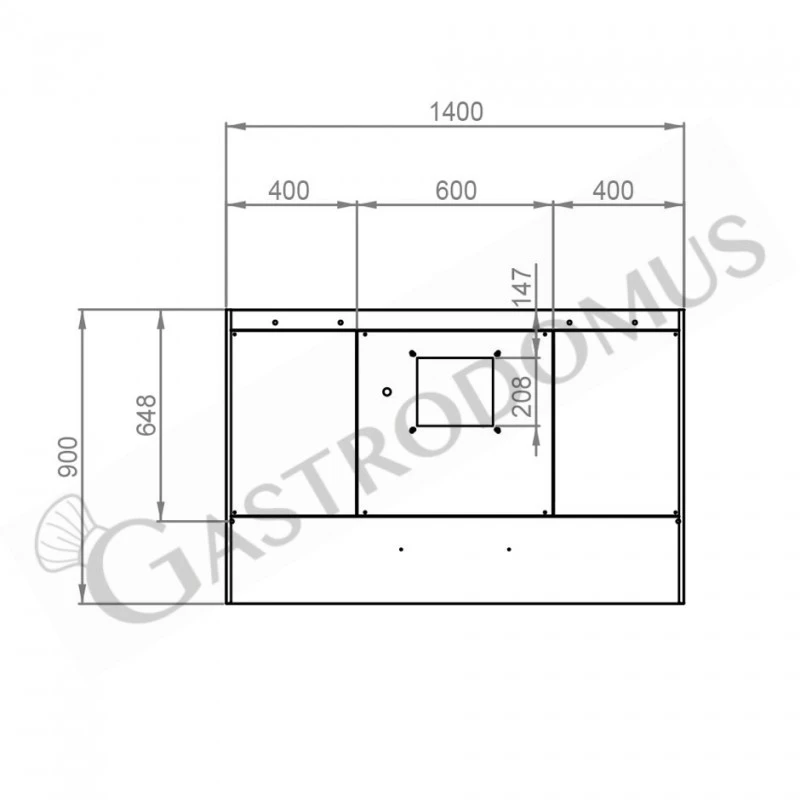Cappa Kubica a parete full optional con motore L1400xP900xH450mm.