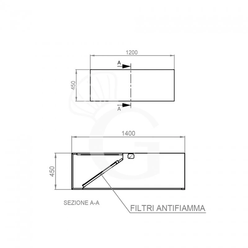 Cappa Kubica a parete senza motore L1200xP1400xH450mm.