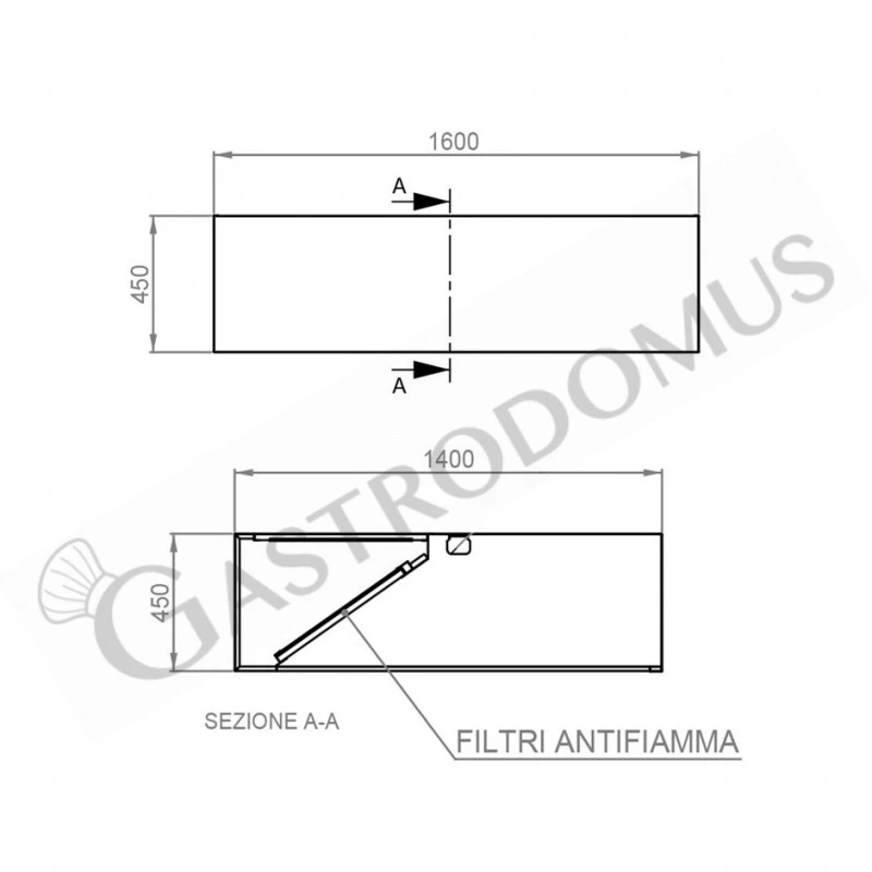 In dotazione filtri a labirinto in AISI304 antifiamma resistenti alla corrosione e lavabili in lavastoviglie che permettono una facile rimozione dei grassi e rubinetto di scarico grassi.