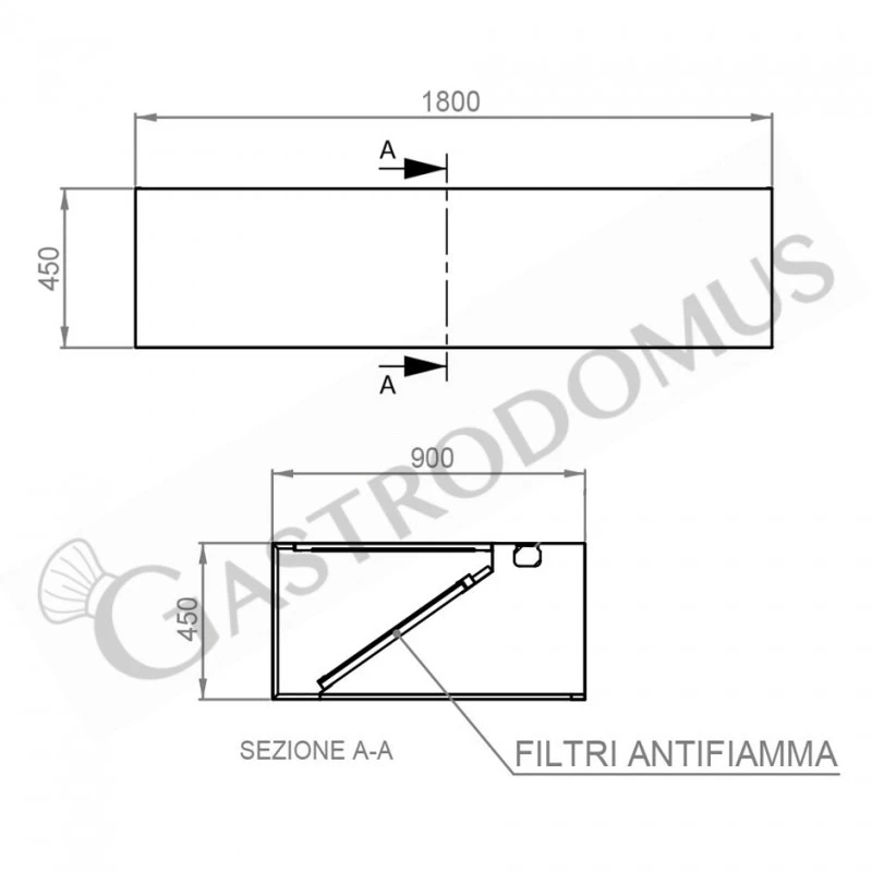 Cappa Kubica a parete senza motore L1800xP900xH450mm.