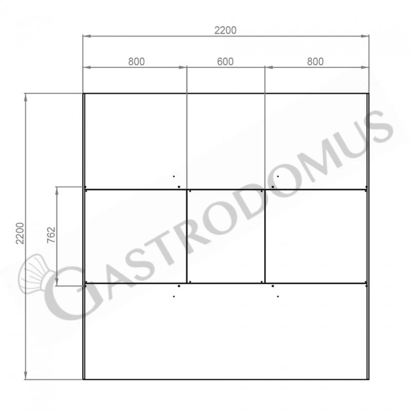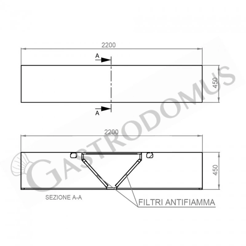 Cappa Kubica centrale senza motore L2200xP2200xH450mm.