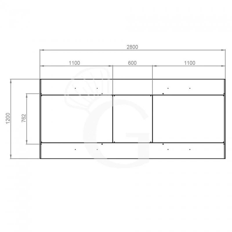 Cappa Kubica centrale senza motore L2800xP1200xH450mm.