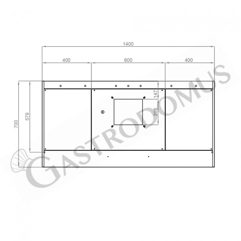 Cappa Snack a parete con motore full optional L1400xP700xH450mm.