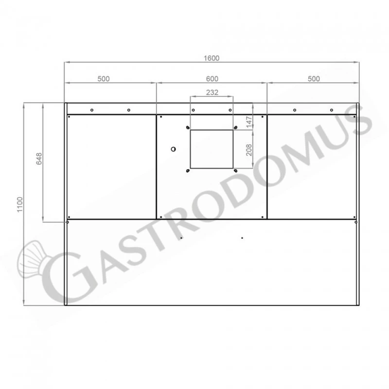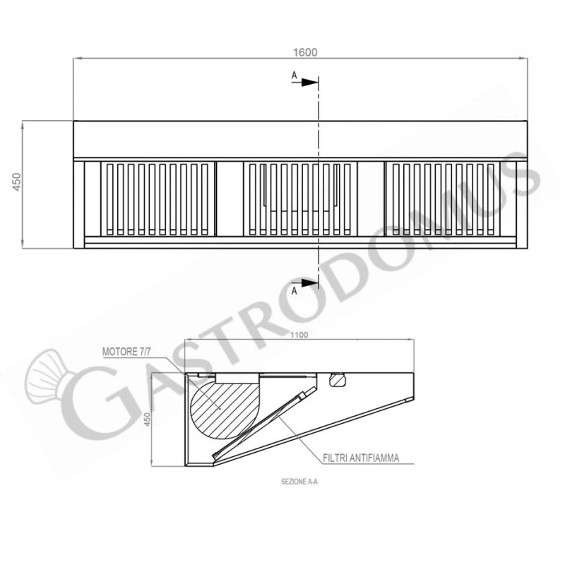 Cappa Snack a parete con motore full optional L1600xP1100xH450mm.