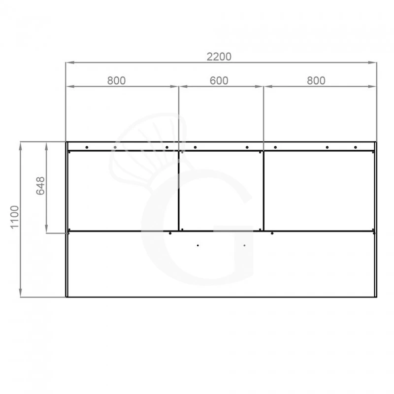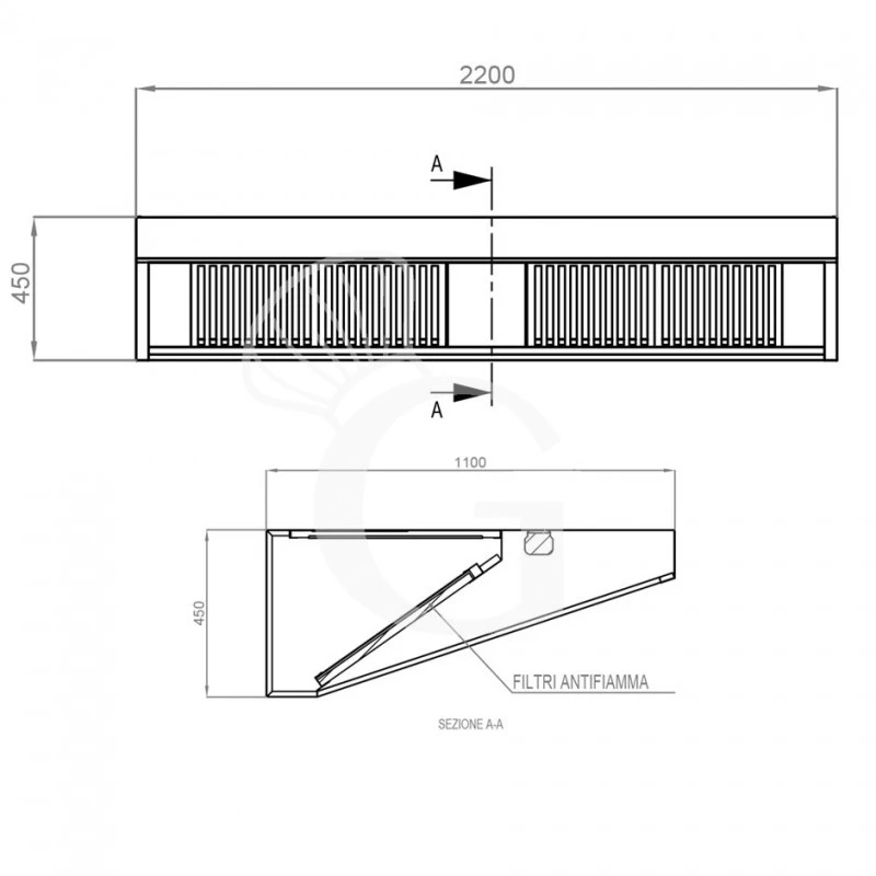 Cappa Snack a parete senza motore L2200xP1100xH450mm.
