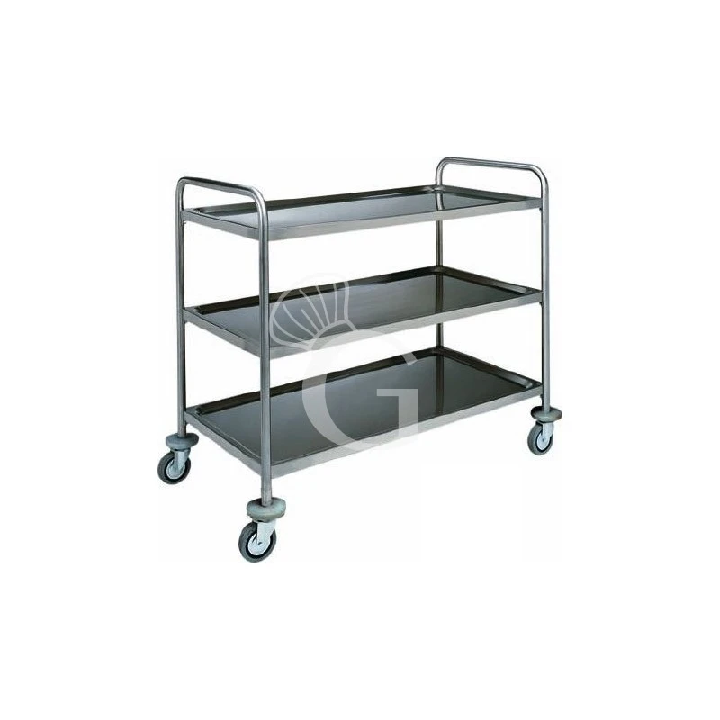 Carrello di servizio 3 piani con struttura tubolare in acciaio inox e dimensioni lunghezza 900 mm x profondità 600 mm x altezza 1040 mm.