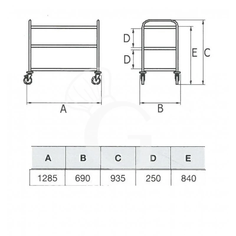 1200 mm X 600 mm - Tipologia carrello
