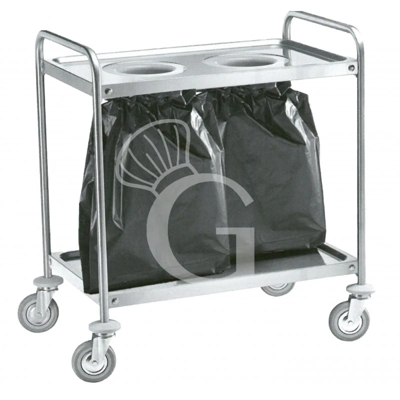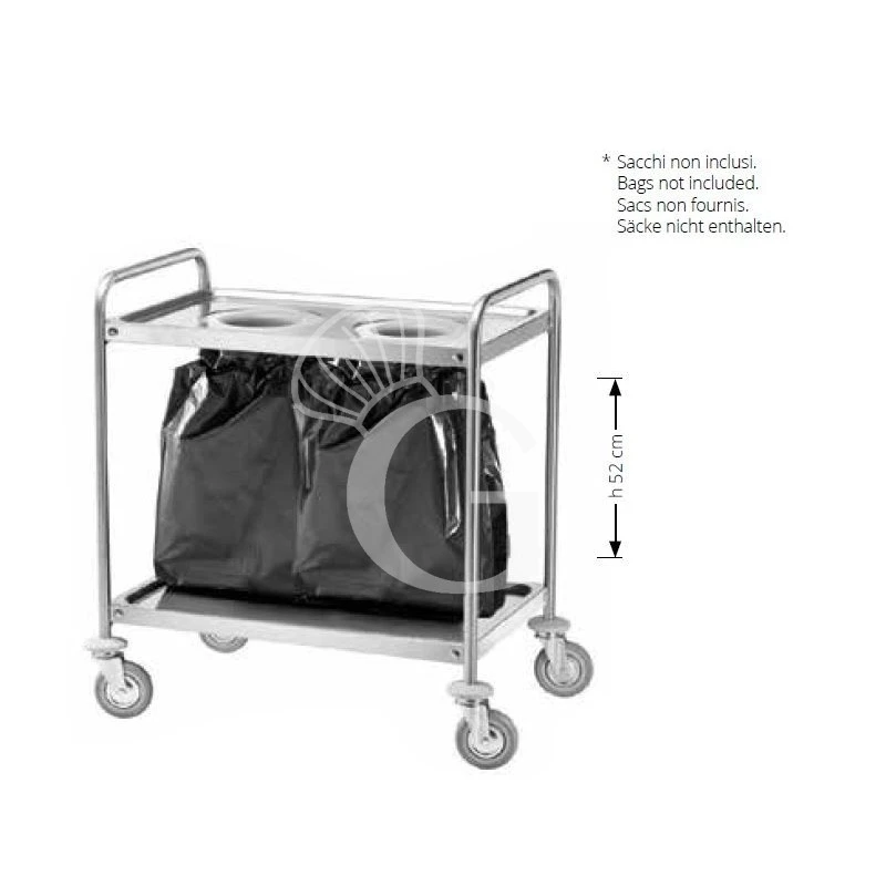 Il carrello ha una struttura in acciaio inox tonda di diametro 25 mm, alto spessore con piani forati e sacchi porta rifiuti (non inclusi).