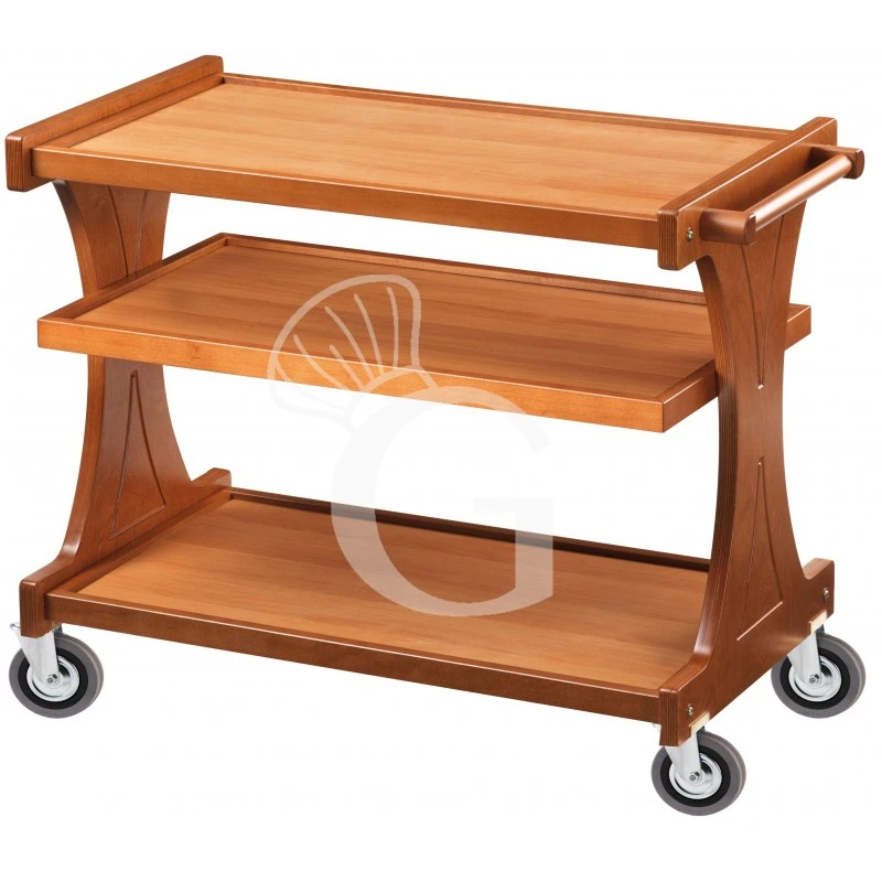 Carrello di servizio in legno con 3 piani e lunghezza 1060 mm x profondità 550 mm x altezza 850 mm.