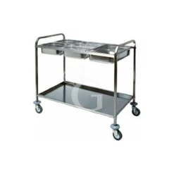 Il carrello portabacinelle ha una struttura tubolare tonda di diametro 25 mm in acciaio inox AISI304 con livello superiore adatto a contenere fino a 3 bacinelle GN1/1 con piano inferiore in acciaio inox AISI304 piegato e insonorizzato.