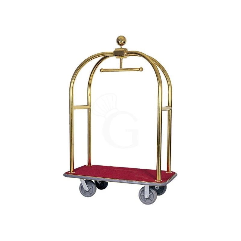 Carrello portavaligie e portabiti in acciaio ottonato – L 1240 mm x P 640 mm x H 1900 mm.