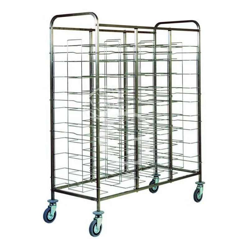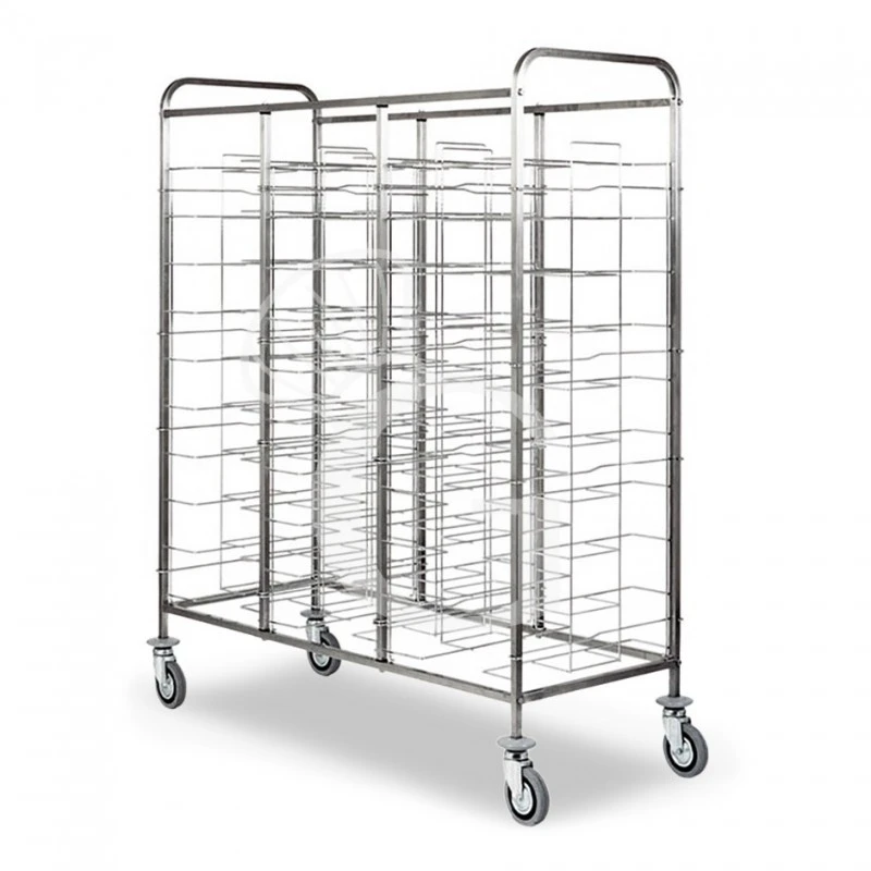 Carrello portavassoi universale in inox per 30 vassoi L 1380 mm x P 620 mm x H 1750 mm.
