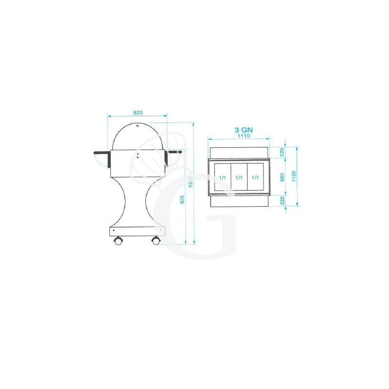 Carrello refrigerato in legno con cupola in plexiglass +2°C/+10°C – L 1110 mm x P 1120 x H 1250 mm.