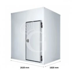 Cella frigorifera negativa con pavimento di dimensioni L 2620 mm x P 1820 mm x H 2220 mm.