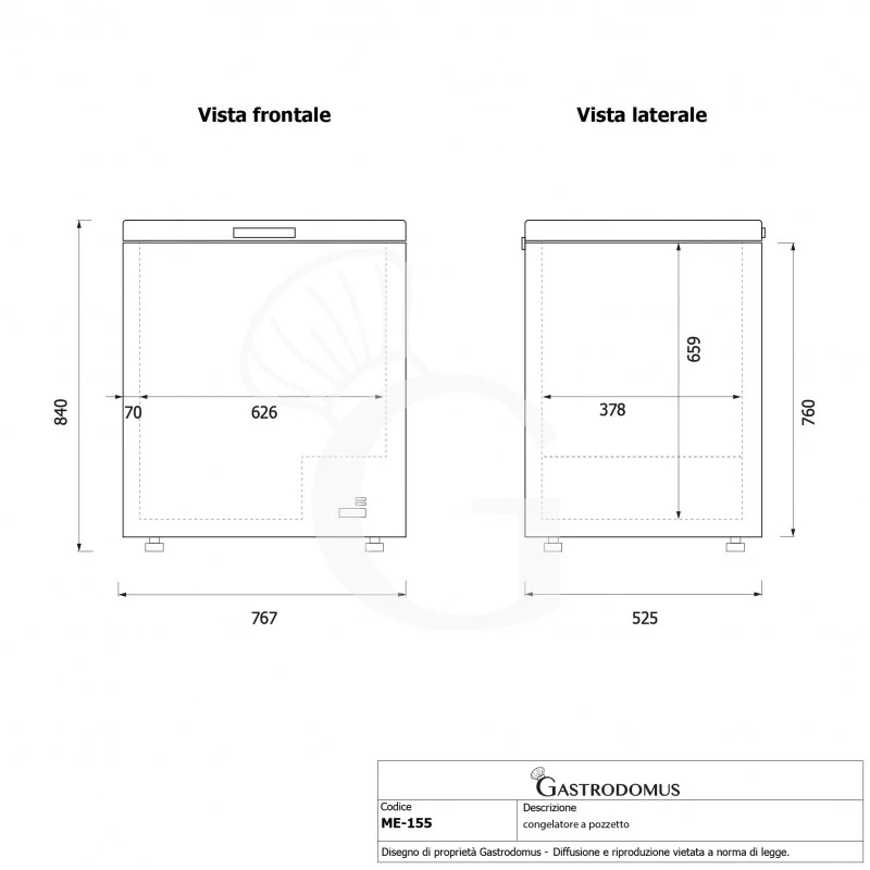 L 626 mm x P 378 mm x H 659mm - Lunghezza congelatore