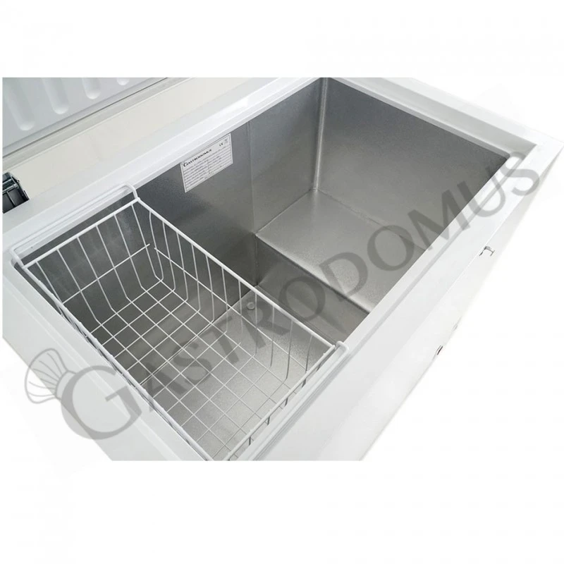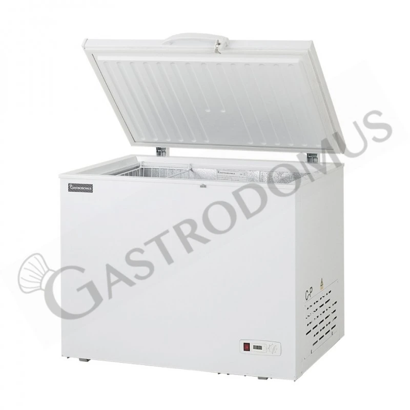 Congelatore a pozzetto con capacità 280 litri, temperatura -18°C, classe F.