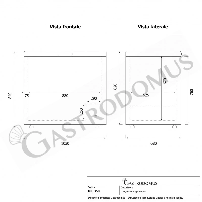 L 880 mm x P 525 mm x H 670 mm - Lunghezza congelatore