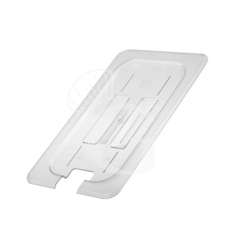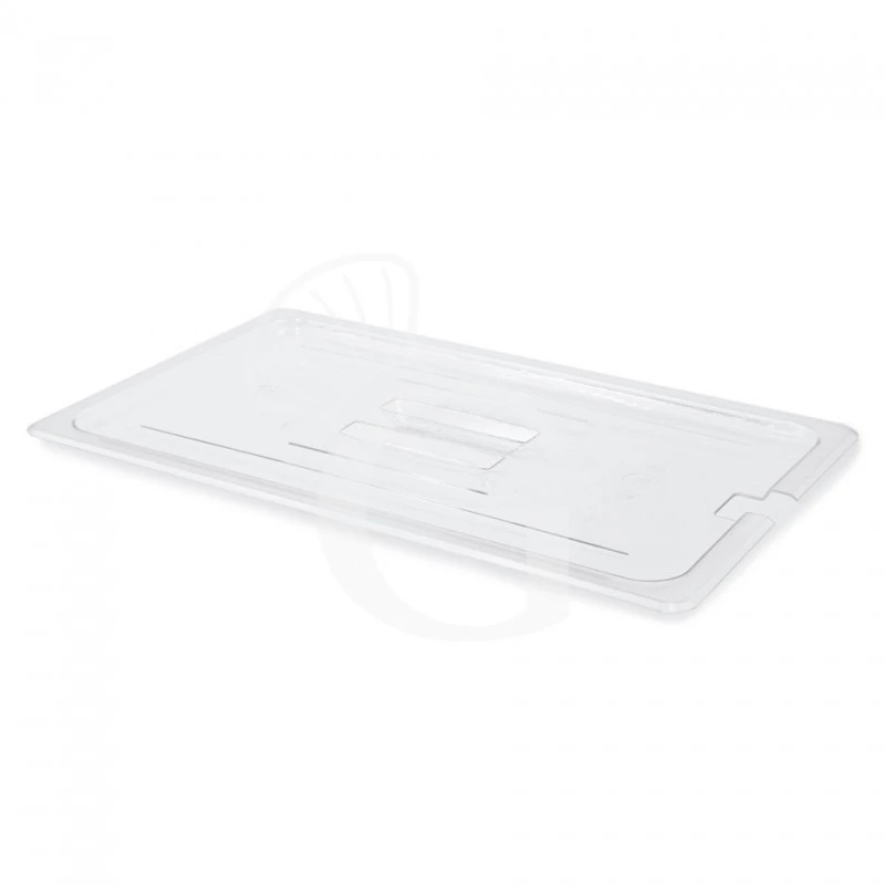 Coperchio con foro mestolo in policarbonato GN1/1 dimensioni L 530 x P 325 mm x H 15 mm.