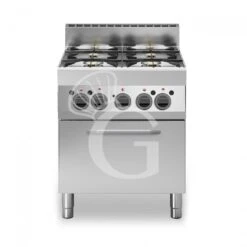 La struttura esterna della cucina a gas è in acciaio INOX AISI304 con spessore 10/10 e anche la porta del forno è in acciaio INOX con un pratico maniglione per l’apertura e la chiusura.