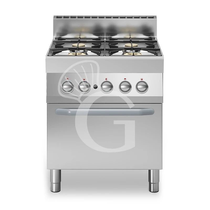 Cucina a gas con 4 fuochi, forno elettrico a convezione, profondità 700 mm.