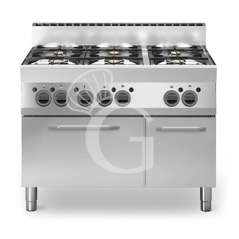 Cucina a gas con 6 fuochi, forno a gas e armadio neutro, profondità 650 mm.