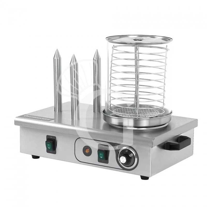 Cuoci Hot Dog, potenza 700 W, 3 spiedi L 480 mm x P 310 mm x H 413 mm.