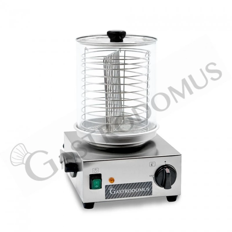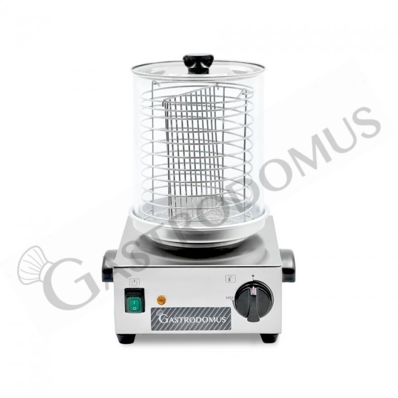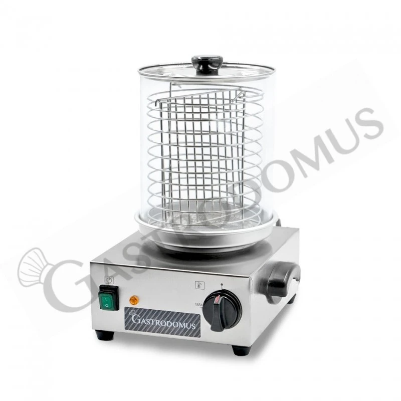 Cuoci Hot Dog con potenza 800 W e dimensioni L 350 mm x P 350 mm x H 440 mm.