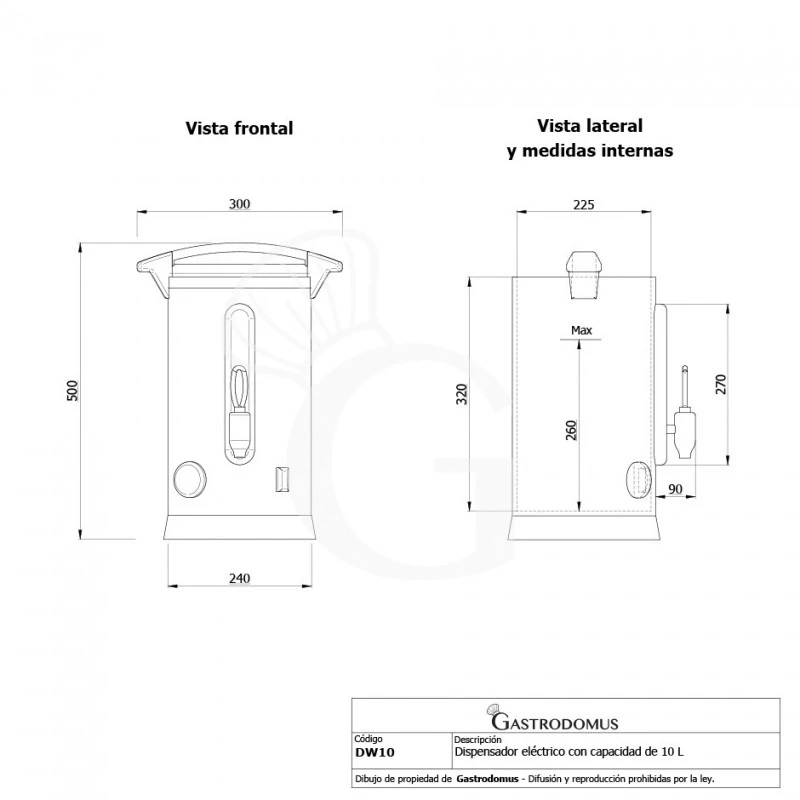 Dispenser per il mantenimento delle bevande calde elettrico in acciaio inox con capacità 10 Litri.