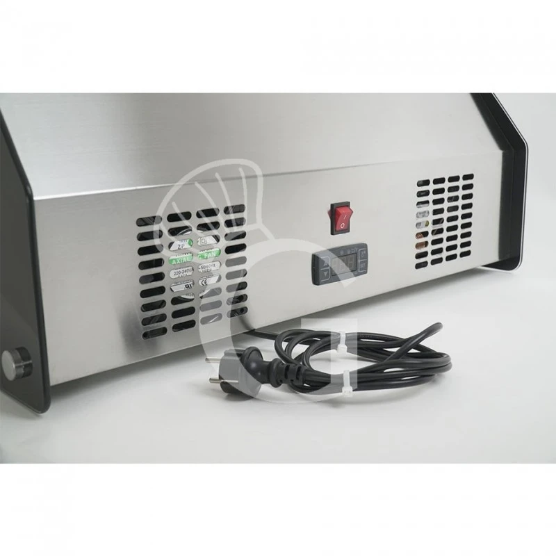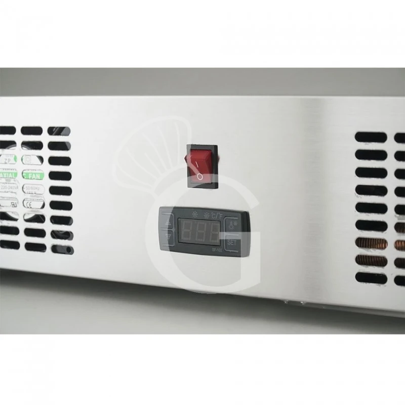 La refrigerazione è ventilata e la temperatura è positiva ( +2° C / +12 ° C ) e può essere costantemente monitorata tramite un display con controllo digitale.