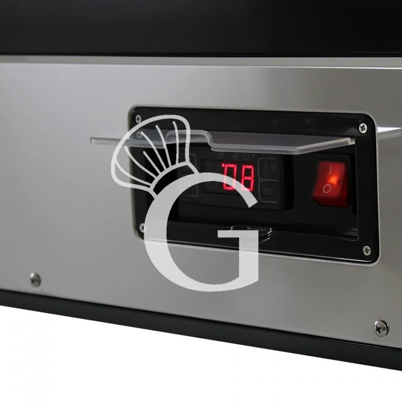 La refrigerazione è ventilata con gruppo incorporato e centralina digitale e il freddo viene prodotto da un evaporatore posto all’esterno della camera.