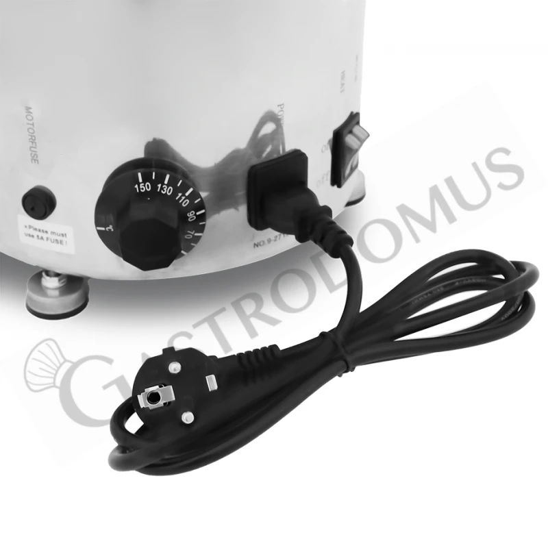 La macchina ha bisogno di essere preriscaldata per 15 minuti prima di aggiungere il cioccolato. Trascorso il tempo del riscaldamento dell’apparecchiatura, si può inserire il cioccolato tritato nella vasca della fontana in modo tale che inizi a sciogliersi. Si consiglia di mescolare con un cucchiaio di legno a intervalli di 10 minuti per accelerare la fusione ed evitare che il cioccolato si attacchi.