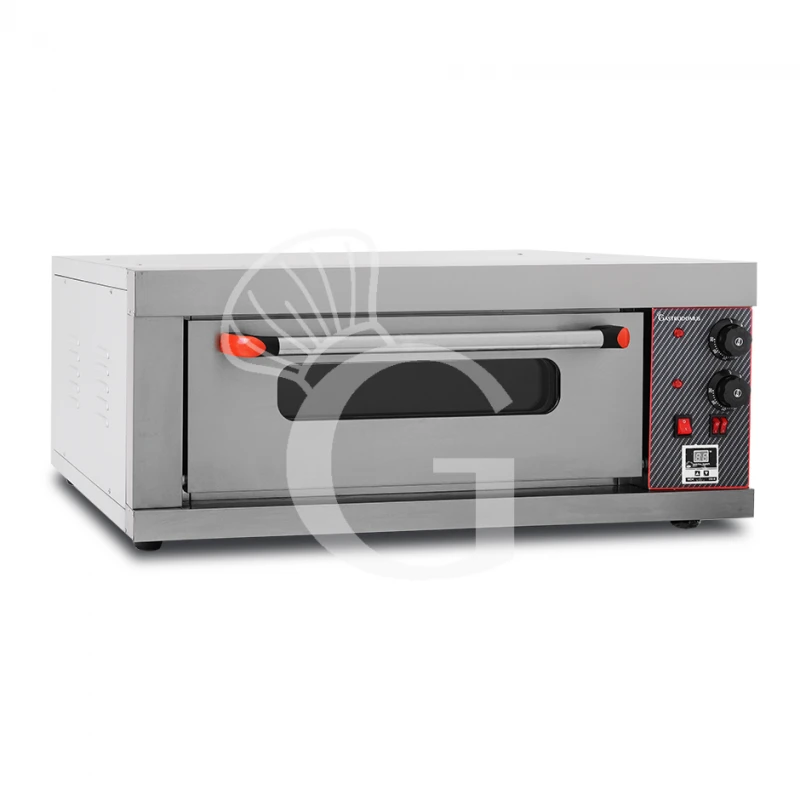 Fornetto elettrico per 1 pizza di diametro 320 mm con 1 camera a controllo meccanico, temperatura 350°C e porta a vetro.
