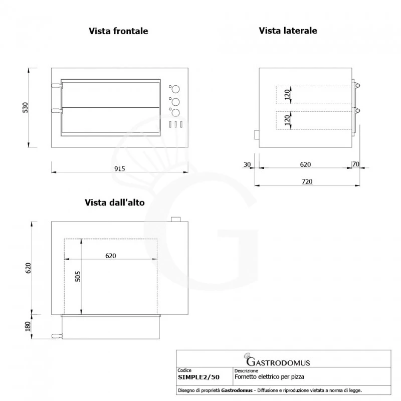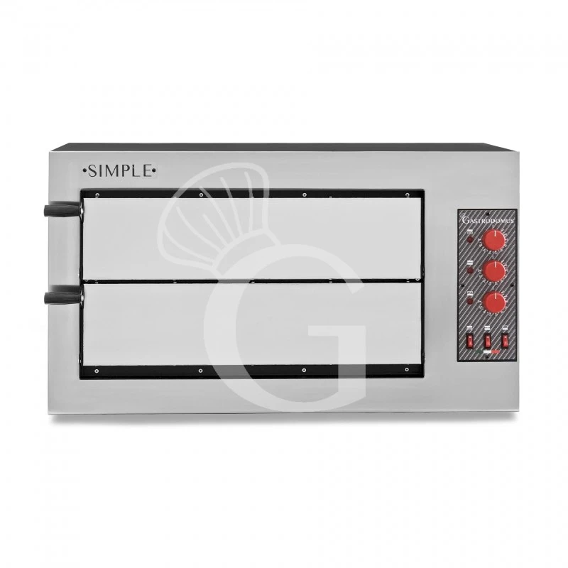 Forno elettrico per 2 pizze del diametro di 450 mm, provvisto di 2 camere temperatura 455°C a controllo meccanico.