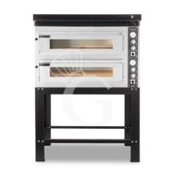 Forno Elettrico 2 camere per 6+6 pizze Ø 350 mm, controllo meccanico, completo di cappa nera e supporto.