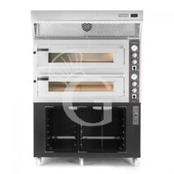 Forno Elettrico 2 camere per 6+6 pizze Ø 350mm, controllo meccanico, con cappa a condensazione inoxe cella di lievitazione nera.