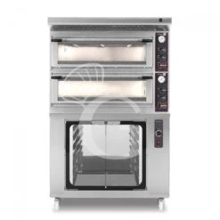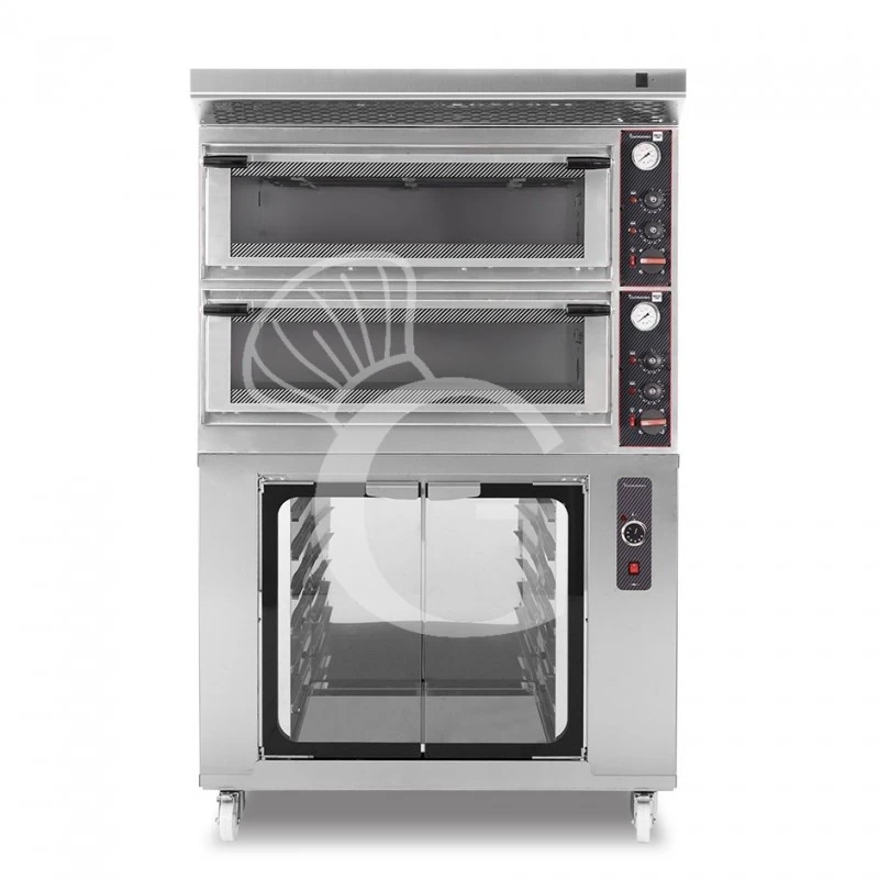 Forno Elettrico meccanico porta vetro 4 teglie 600×400 o 4+4 pizze Ø400, cappa inox e cella di lievitazione inox.
