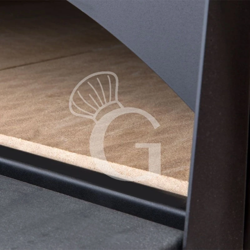 La caratteristica principale dei forni a gas è la platea in mattoni refrattari (spessore 25 mm). Questa caratteristica permette al forno di mantenere il calore e raggiungere temperature più elevate anche dopo essere stato aperto. Il piano di cottura in mattoni refrattari limita pertanto la dispersione del calore durante il ciclo di cottura assicurando una cottura uniforme e un ingente risparmio energetico.