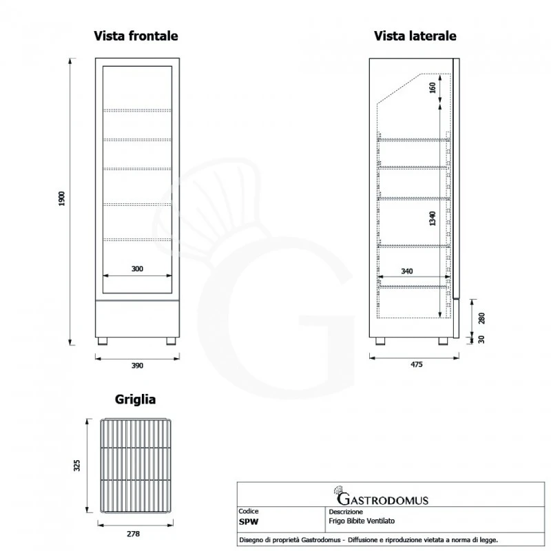 L 390 mm x P 475 mm x H 1900 mm - Dimensioni interne